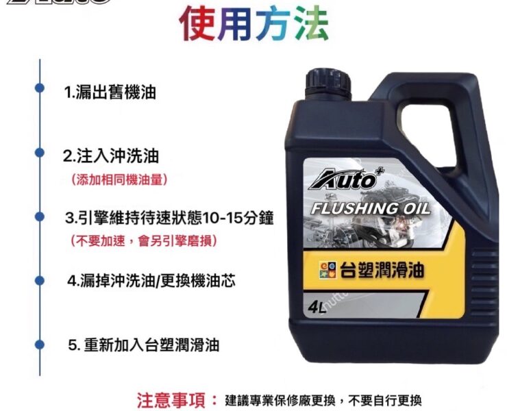 台塑引擎沖洗油 台塑引擎沖洗油是台塑石化公司生產的一種沖洗引擎的產品。這種油通常用於清潔、保養和維護汽車、柴油貨車或其他內燃機的引擎系統。 台塑引擎沖洗油具有良好的清潔效果,能夠清除引擎系統中的積碳、油污和其他污垢,同時還能防止引擎過熱和損壞。使用這種油可以提高引擎的性能和燃燒效率,並延長引擎的使用