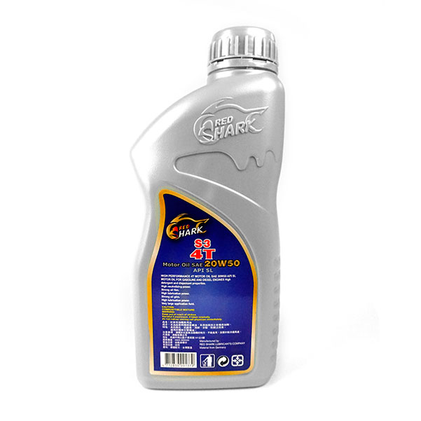 紅鯊多功能四行程專用機油RS 4T 20W50,以特殊添加劑,耐高溫,耐極壓,抗氧性佳。潤滑性佳,完整的油膜,降低引擎磨損,清潔性佳防止殘渣形成,延長引擎壽命。